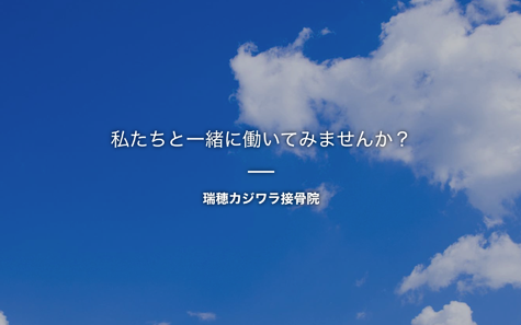 お帰りの際、青空のような晴ればれとした気持ちと笑顔に…、すべての患者様に「来て良かった」そう思っていただける接骨院となりますよう、スタッフ一同、日々精進して参ります